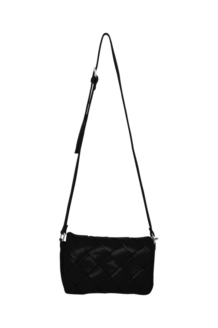 A black shoulder bag with a beautifully textured woven finish, designed in a structured yet soft silhouette that feels both modern and timeless. The clean shape and smooth strap make it an easy everyday piece, while the woven detailing adds a touch of craftsmanship and interest.